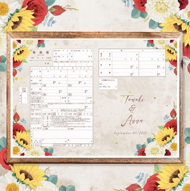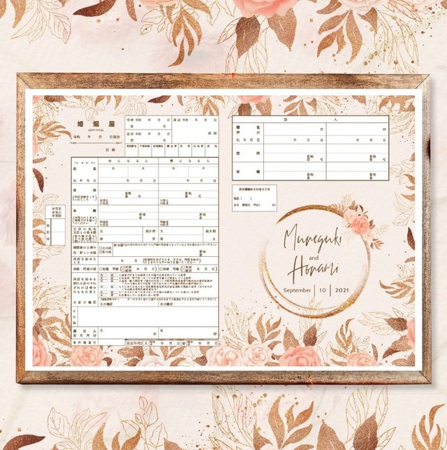 アンティークフラワーローズ 花柄 婚姻届 名入れ 日付入れ オーダーメイド オリジナル