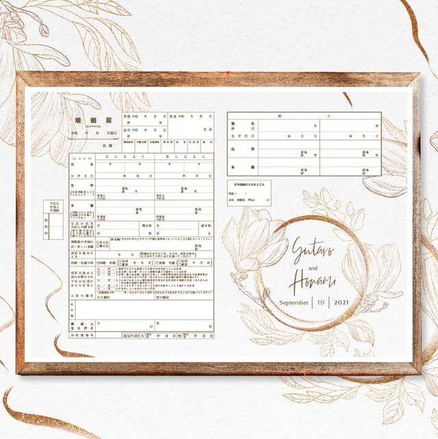 初めまして \♡︎/ お急ぎの方も大歓迎!! 普段はグラフィックデザインの仕事をしております。 役所提出用の婚姻届です。 お客様の中にはプロポーズ用として男性からのご依頼、ご友人やお母様から娘さんへのプレゼント等、色々な方からのご依頼をお受けしております(*´ω`*)役所の提出用としても使えますが、こちらは保管用としても人気です。10年後…婚姻届書いたねって想い出に浸れますよね。。♡︎ イニシャル部分&日付を変更できますので、下記内容を購入後すぐにお知らせください。 ▼注文備考欄へ記載 ………………………………………………………… 1、お名前・お相手様のお名前(ローマ字)▶︎ 2、入れる入籍日(西暦から)▶︎ ………………………………………………………… こちらの内容 ■①JPGでのデータでの納品 用紙サイズは、A3サイズです。 ■②セブンイレブンマルチコピー機予約番号を取得します。 印刷には別途1枚100円必要です。 セブンイレブンのコピー機でネットプリント予約番号を 入れるとと誰でも簡単に印刷可能です! ご自身で印刷していただく形になります。 ご自宅の印刷機またはコンビニのプリンターで印刷可能! データは、URLでお送りします。 ※機械音痴だよー!印刷なんて出来ないってお客様に。印刷して納品希望されるお客様はオプションを追加してください。白枠ありorなしがお選び頂けます。 ※データ納品での印刷は、印刷の関係上、A3に白枠が入ります。それは絶対入ってしまいますのでご了承ください。役所には問題なく出せます。 その他婚姻届のデザイン作成しています。 名無しバージョンも出品しているので、商品一覧から探してみてください◡̈ #婚姻届 #入籍届 #結婚 #ゼクシィ #ゼクシー #花柄 #結婚届 #結納 #顔合わせ #両家顔合わせ #プロポーズ
