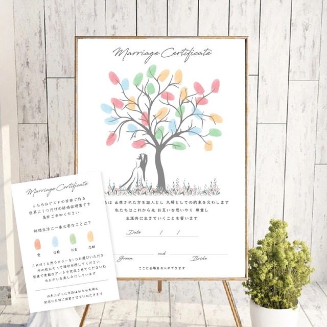 ゲスト参加型ウェディングツリー厚紙印刷A4/結婚証明書/ウェルカムスペース/人前式/ゲストおもてなし