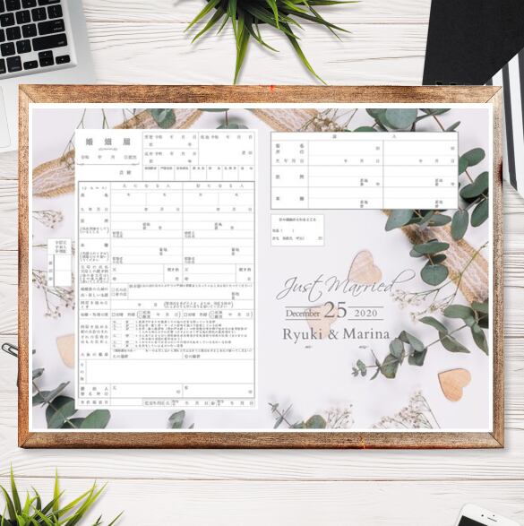 お客様の中にはプロポーズ用として男性からのご依頼、ご友人やお母様から娘さんへのプレゼント等、色々な方からのご依頼をお受けしております(*´ω`*)役所の提出用としても使えますが、こちらは保管用としても人気です。10年後…婚姻届書いたねって想い出に浸れますよね。。♡︎