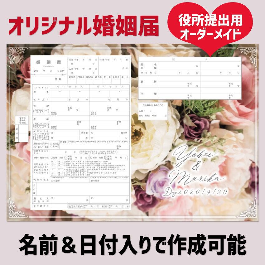 落ち着いた可愛い花柄 薔薇 婚姻届 名入れ 日付入れ オーダーメイド オリジナル 指輪置き