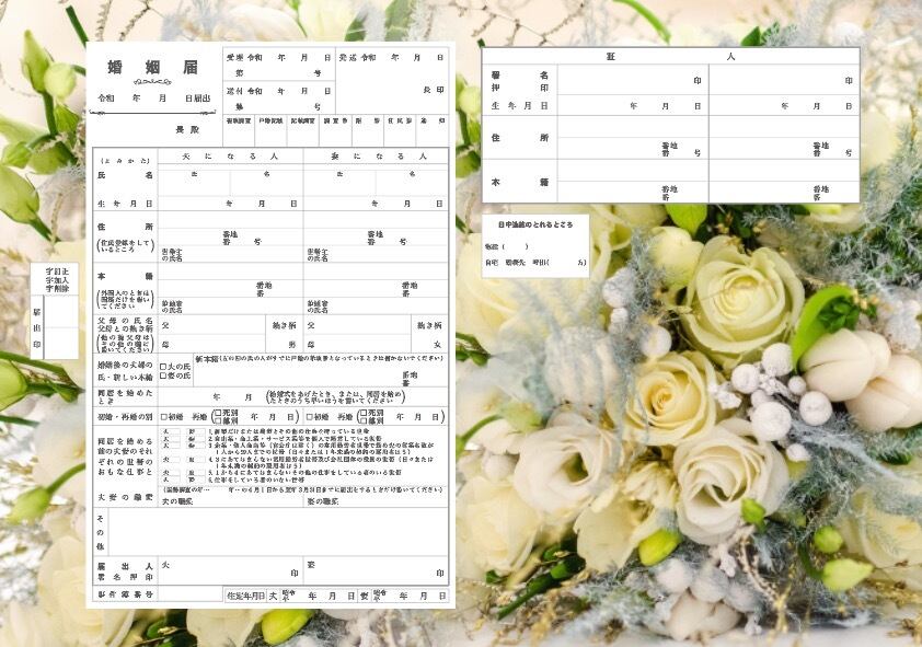 花嫁のブーケ ブートニア 花柄 婚姻届