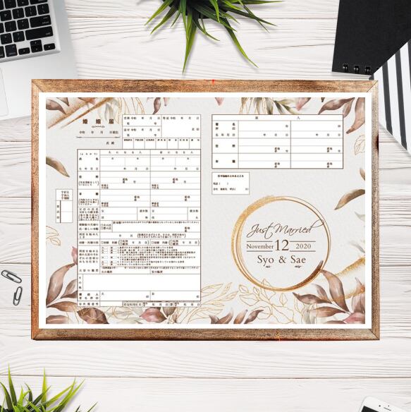 お客様の中にはプロポーズ用として男性からのご依頼、ご友人やお母様から娘さんへのプレゼント等、色々な方からのご注文をお受けしております(*´ω`*)役所の提出用としても使えますが、こちらは保管用としても人気です。10年後…婚姻届書いたねって想い出に浸れますよね。。♡︎