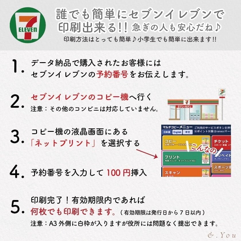※機械音痴だよー!印刷なんて出来ないってお客様に。印刷して納品希望されるお客様は、こちらの価格にプラス300円頂戴します。A3用紙1枚の納品で、クリアファイルにお入れしてお送りします。価格変更するので、印刷納品希望の方はコメントください。印刷2枚を希望される方はこの価格にプラス400円です。