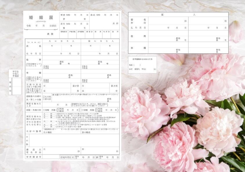 牡丹の花 ブーケ 花柄 婚姻届 牡丹 ぼたん