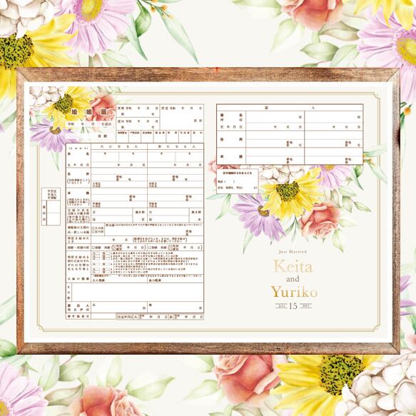 ナチュラルガーデンフラワー 落ち着いたシンプルで可愛い大人 水彩花柄 婚姻届 ウエディング 名入れ 名入り