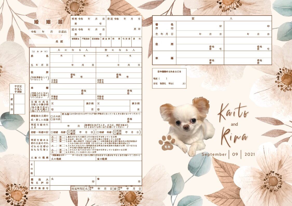 そんな飼い主様のために作った世界でたった1つのオリジナルオーダー婚姻届。