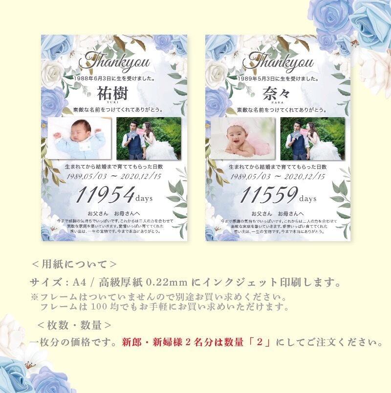 *生まれた日〜挙式日(または入籍日)までの日数を当店で計算してお入れします。