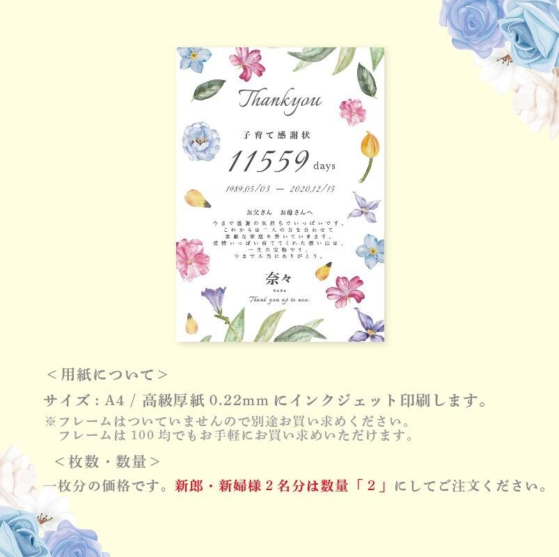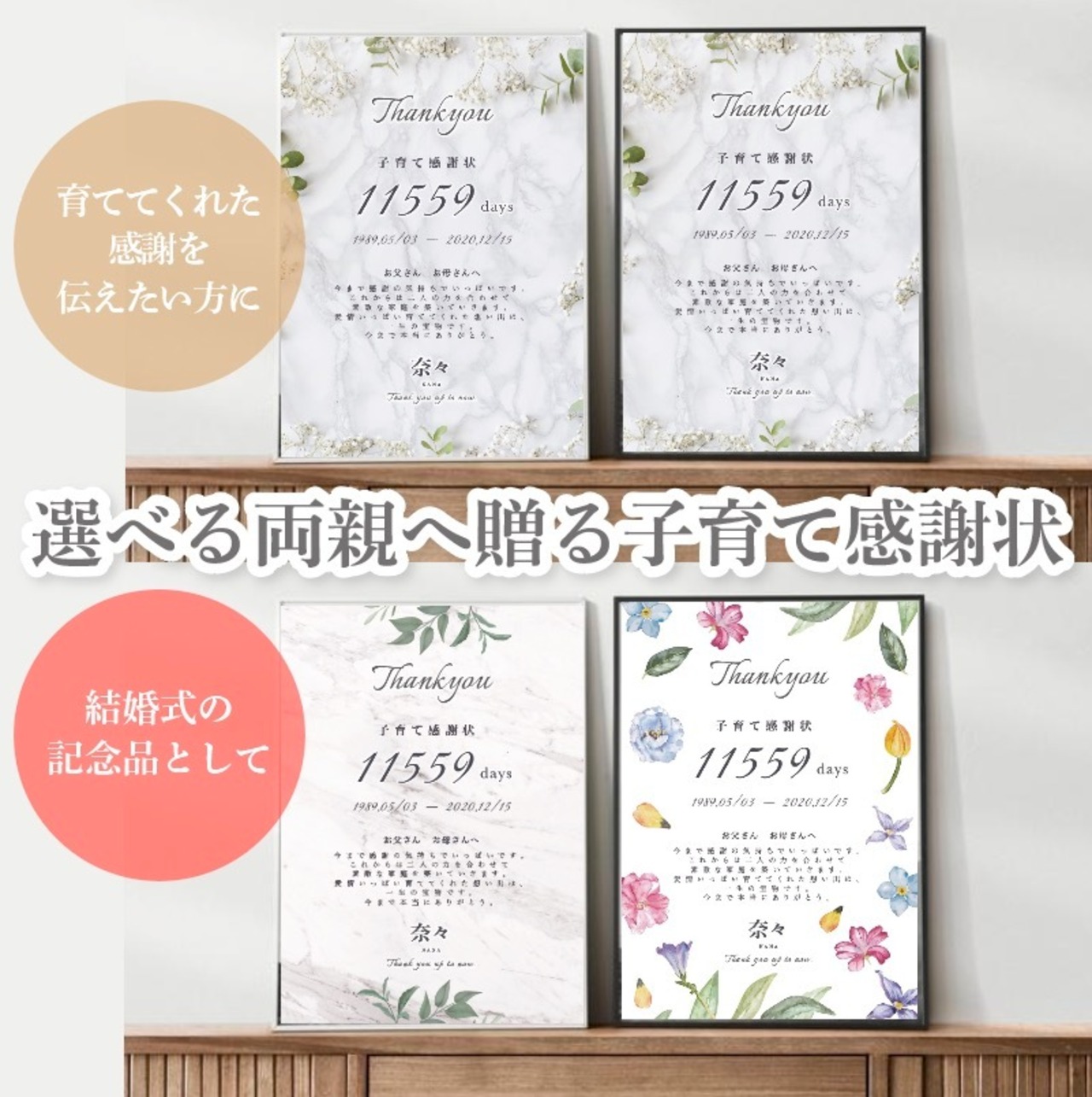 両親へ贈る子育て感謝状♡︎選べる4つの柄/結婚式記念品/両親プレゼント/サプライズ/結婚証明書