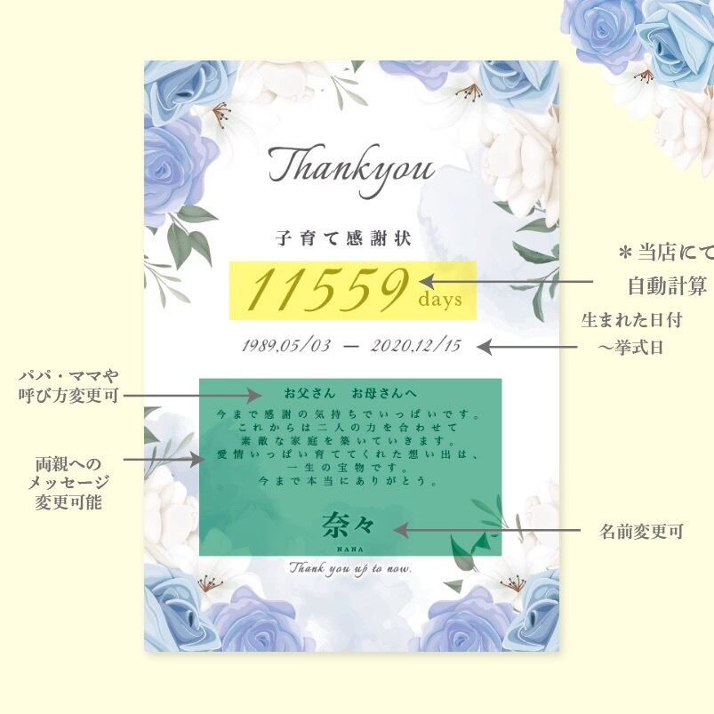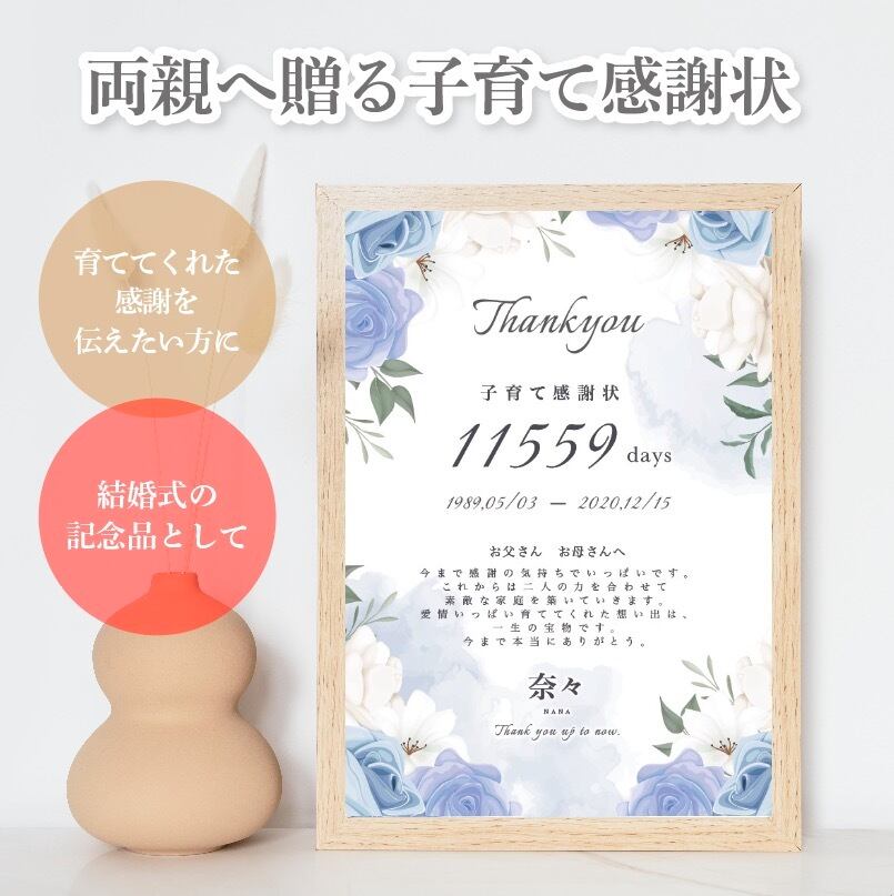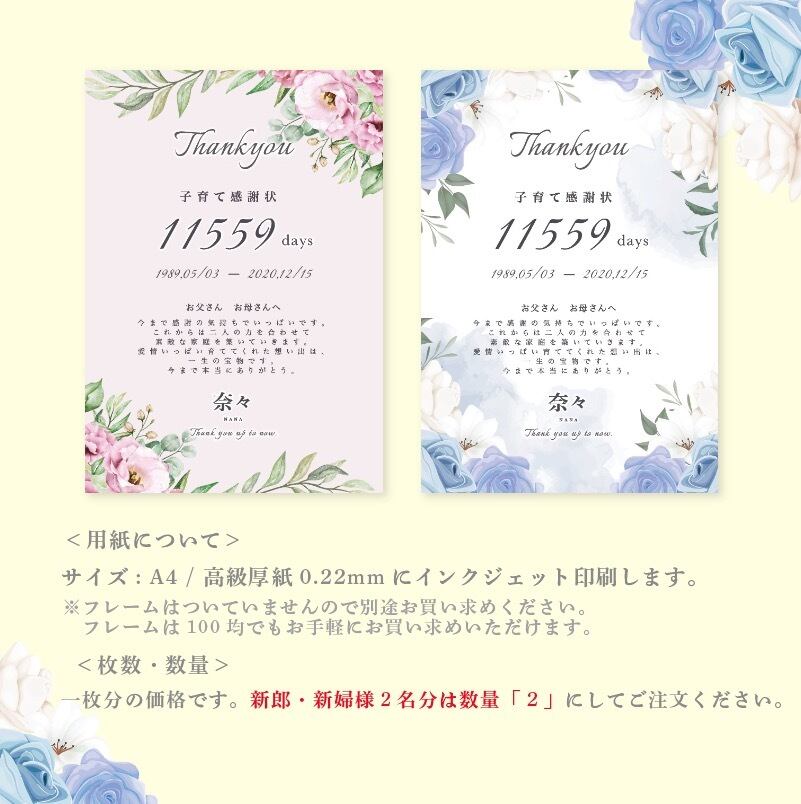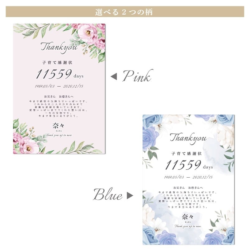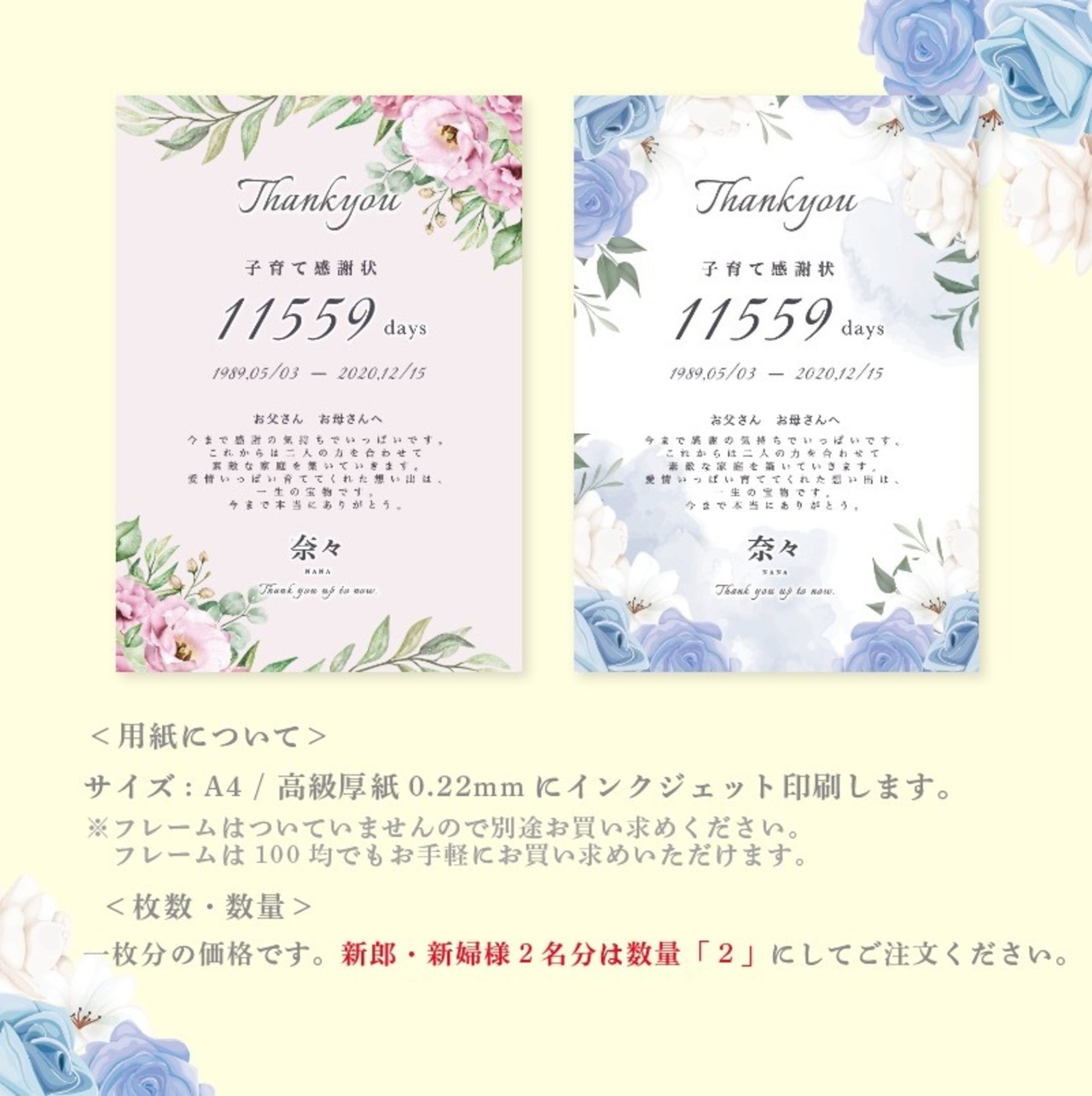 両親へ贈る子育て感謝状♡︎選べる2色!ピンクorブルーの水彩花柄/結婚式記念品/両親プレゼント/サプライズ