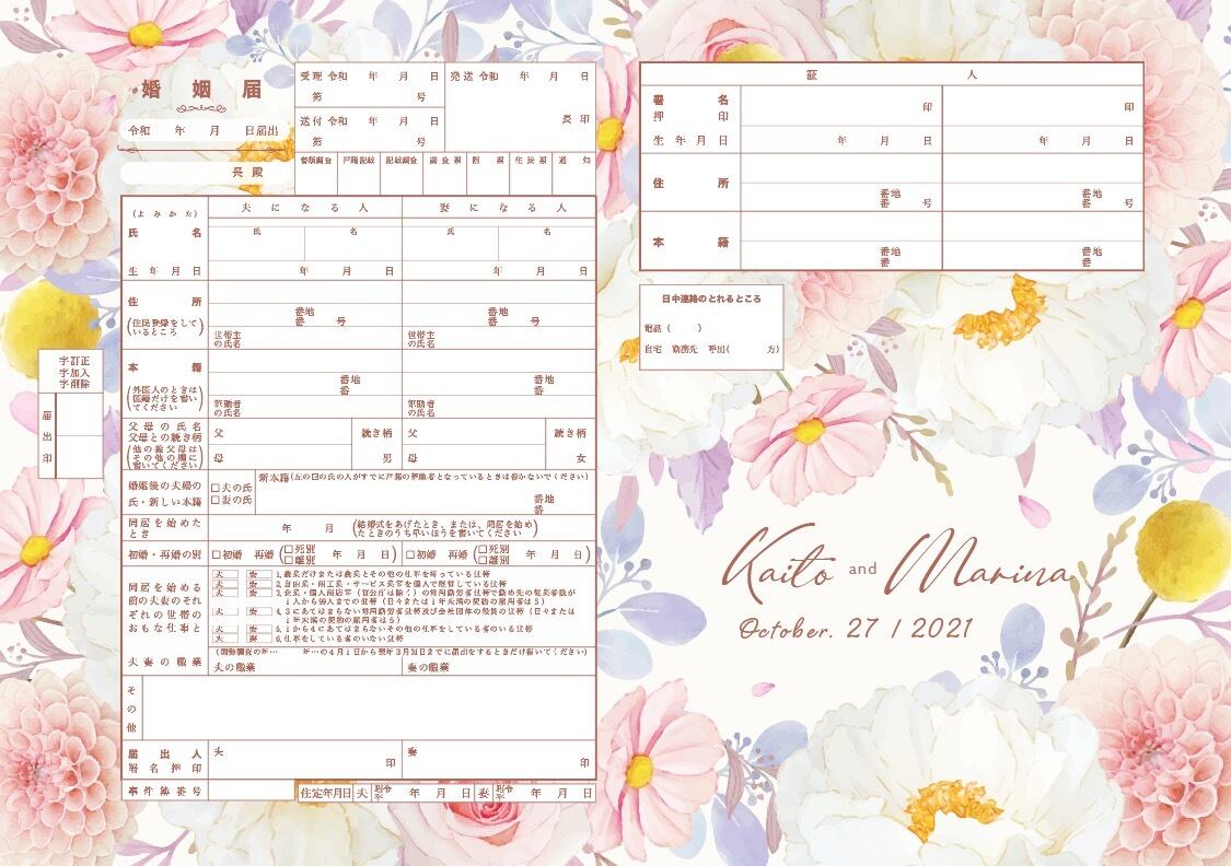 #婚姻届 #入籍届 #結婚 #ゼクシィ #ゼクシー #花柄