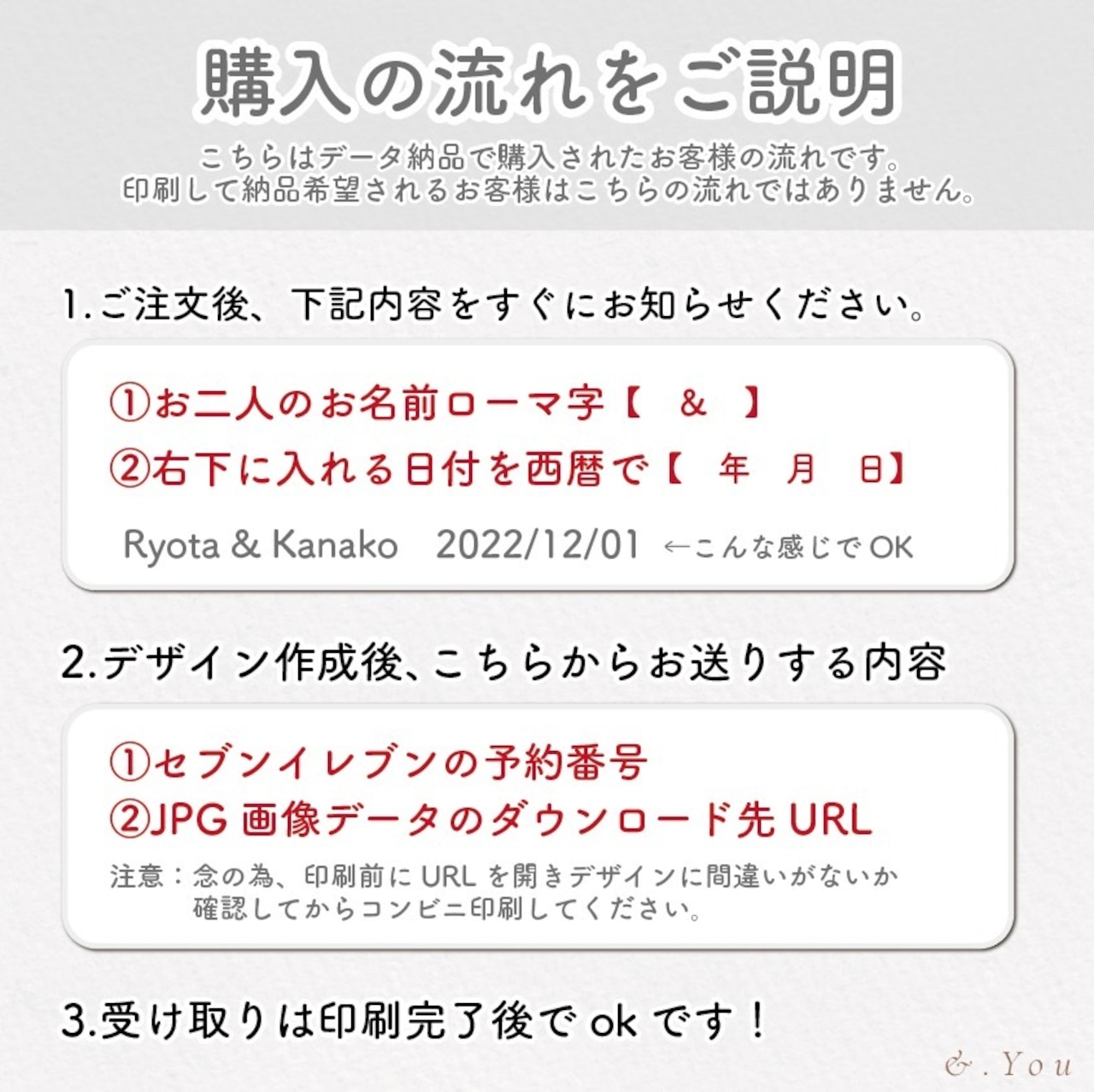 ※機械音痴だよー!印刷なんて出来ないってお客様に。印刷して納品希望されるお客様はオプションを追加してください。白枠ありorなしがお選び頂けます。