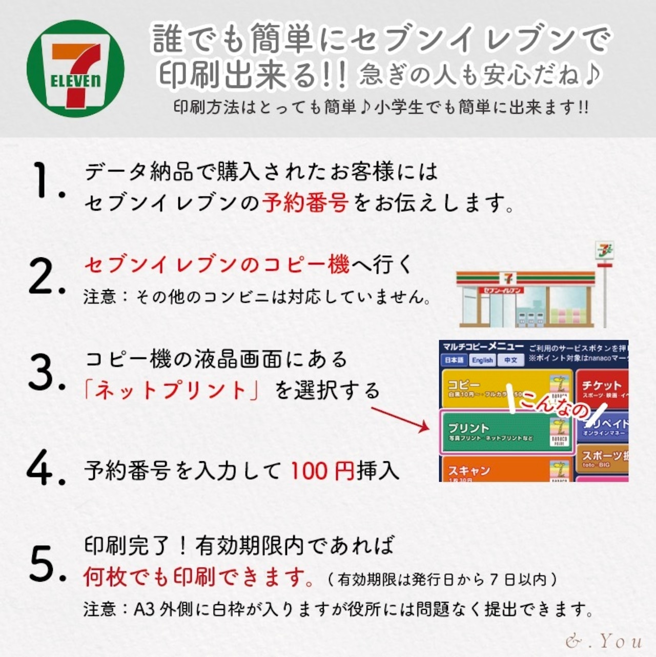 ご自宅の印刷機またはコンビニのプリンターで印刷可能!