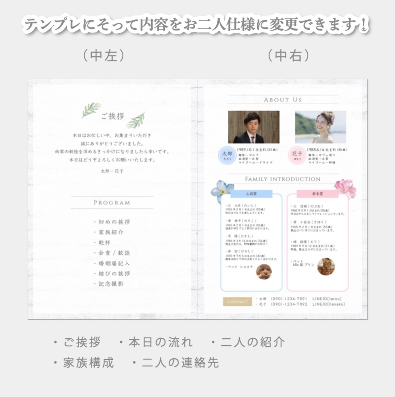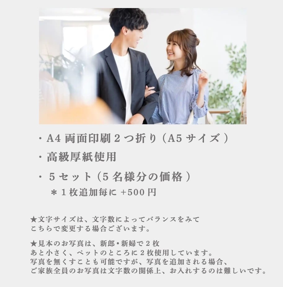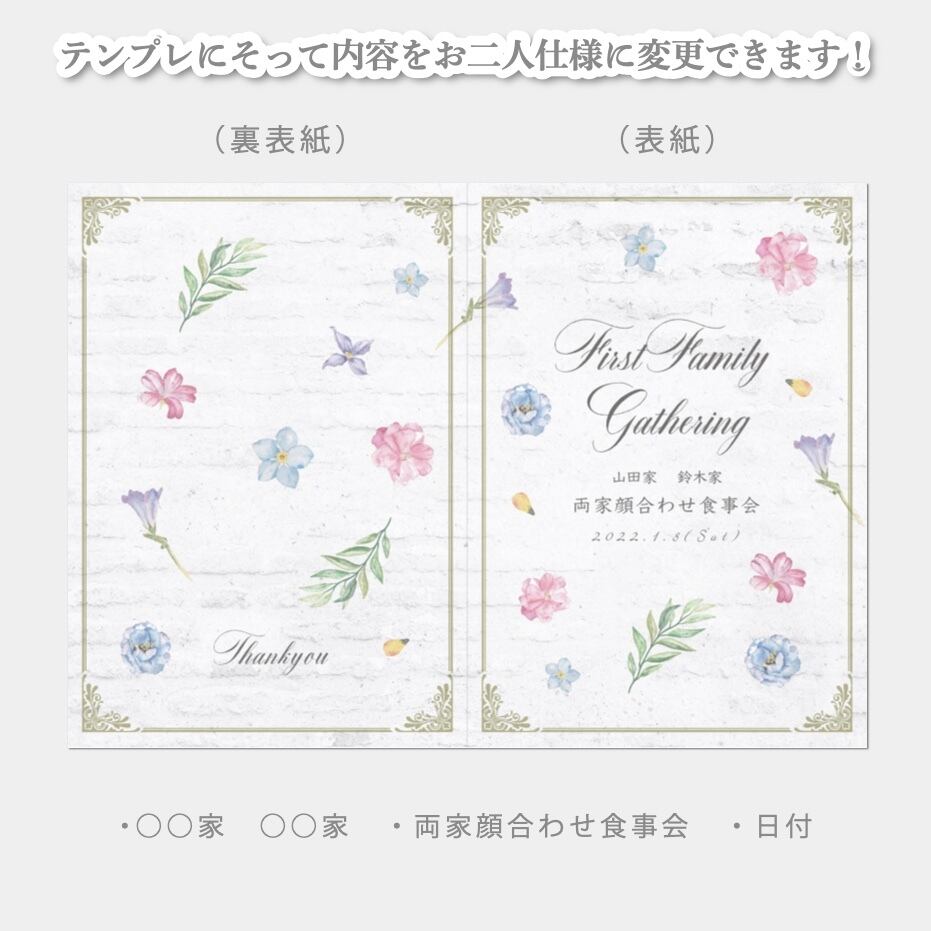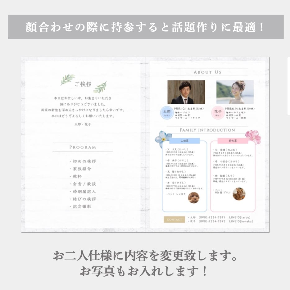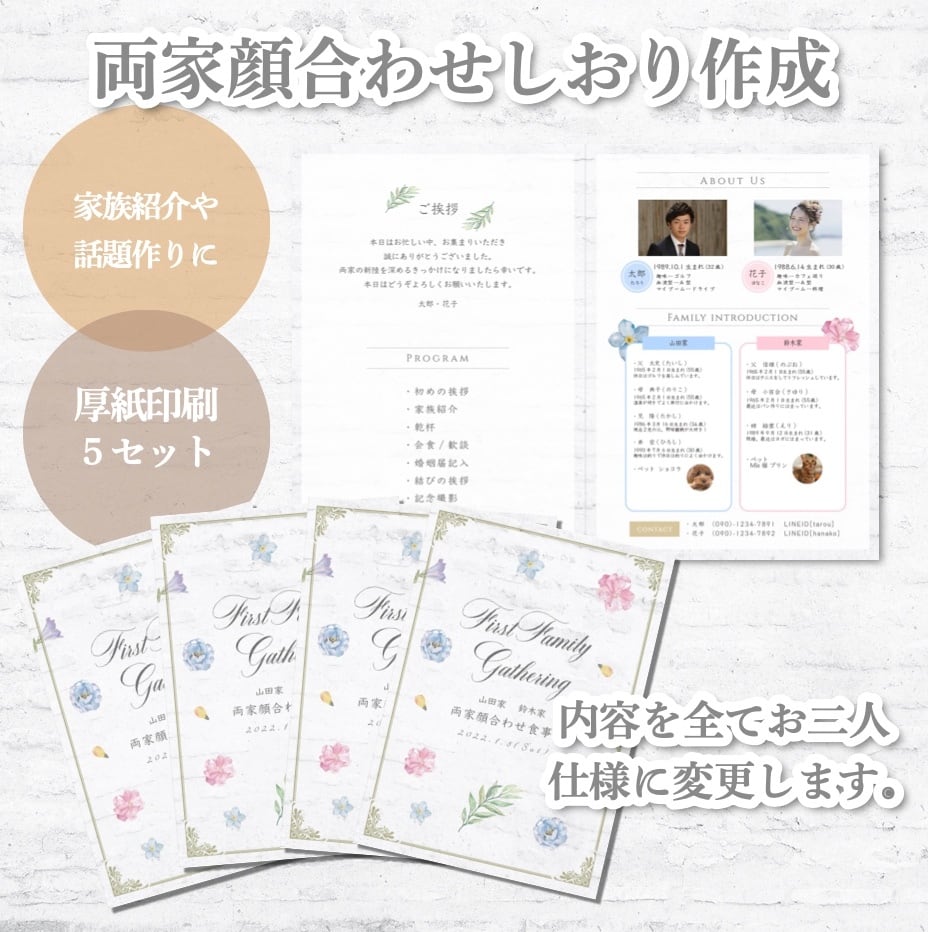 厚紙印刷5セット★両家顔合わせ 結納 しおり プロフィール パンフレット 食事会 家族紹介 結婚 ブライダル 印刷 作成 進行 花柄