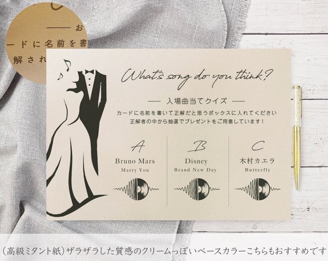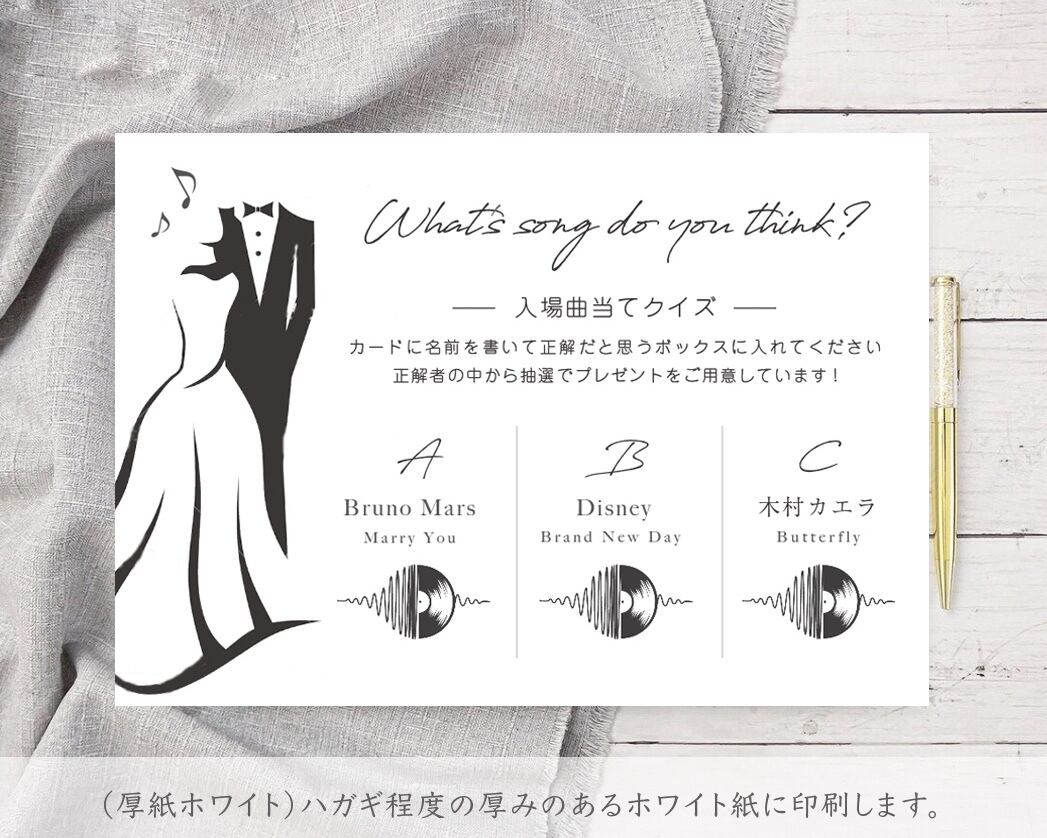 入場曲当てクイズ 結婚式で使えるゲストのおもてなし/ギフト/披露宴/文字修正無料