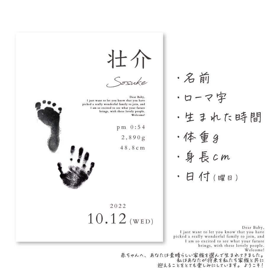 命名書お作りします♡︎失敗しない手形足型スタンプ修正して印刷します✧︎新生児ニューボーンフォト撮影にアート、ポスター