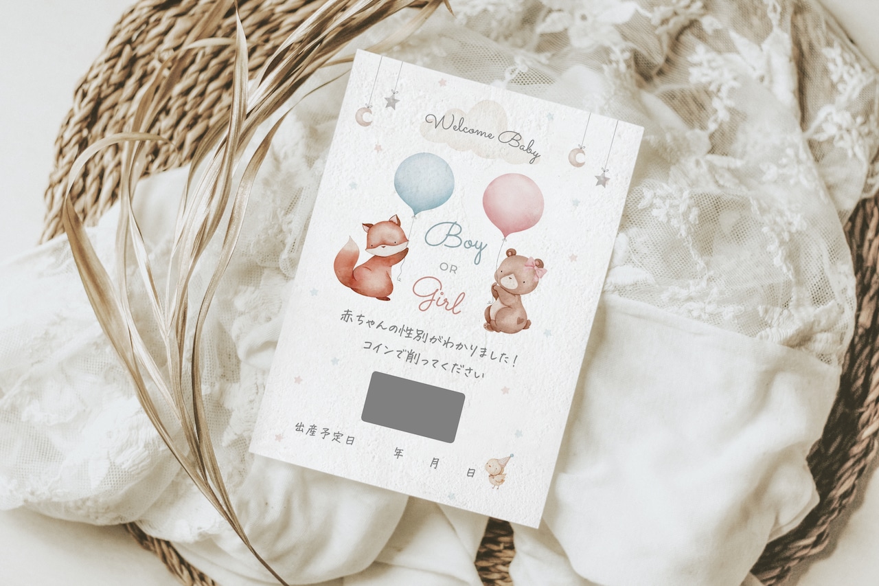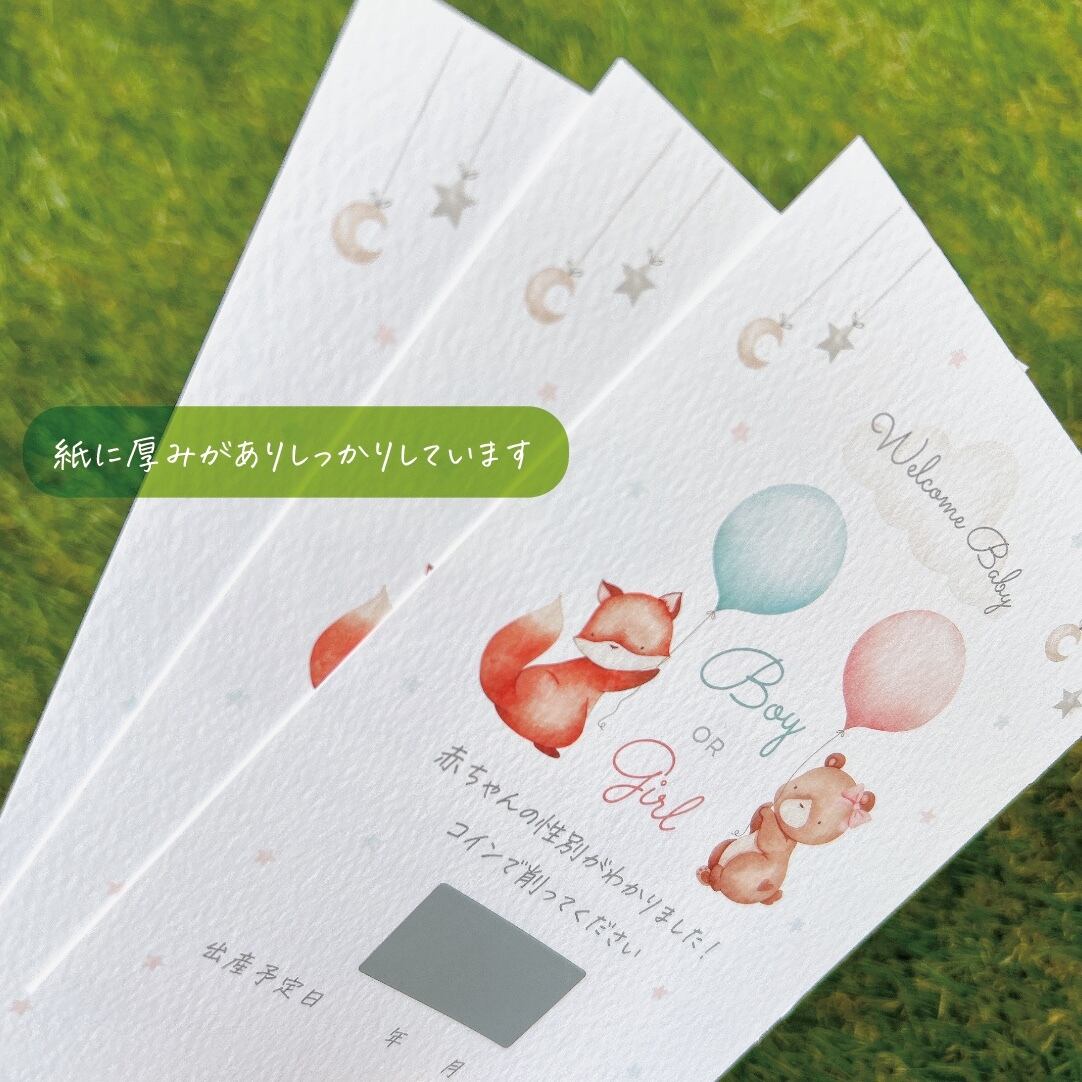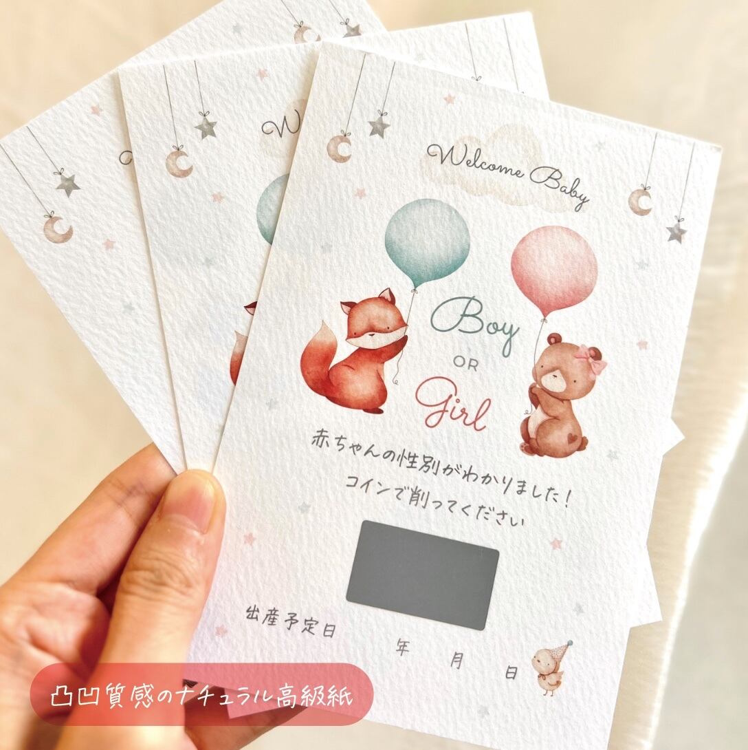 ジェンダーリビールカード*赤ちゃんの性別発表*凸凹質感ナチュラル高級紙*スクラッチで削ってワクワク♪女の子用・男の子用・ふたご用・事前購入用
